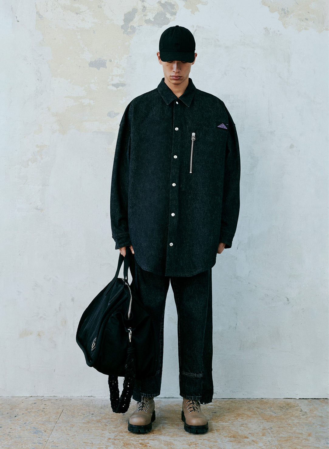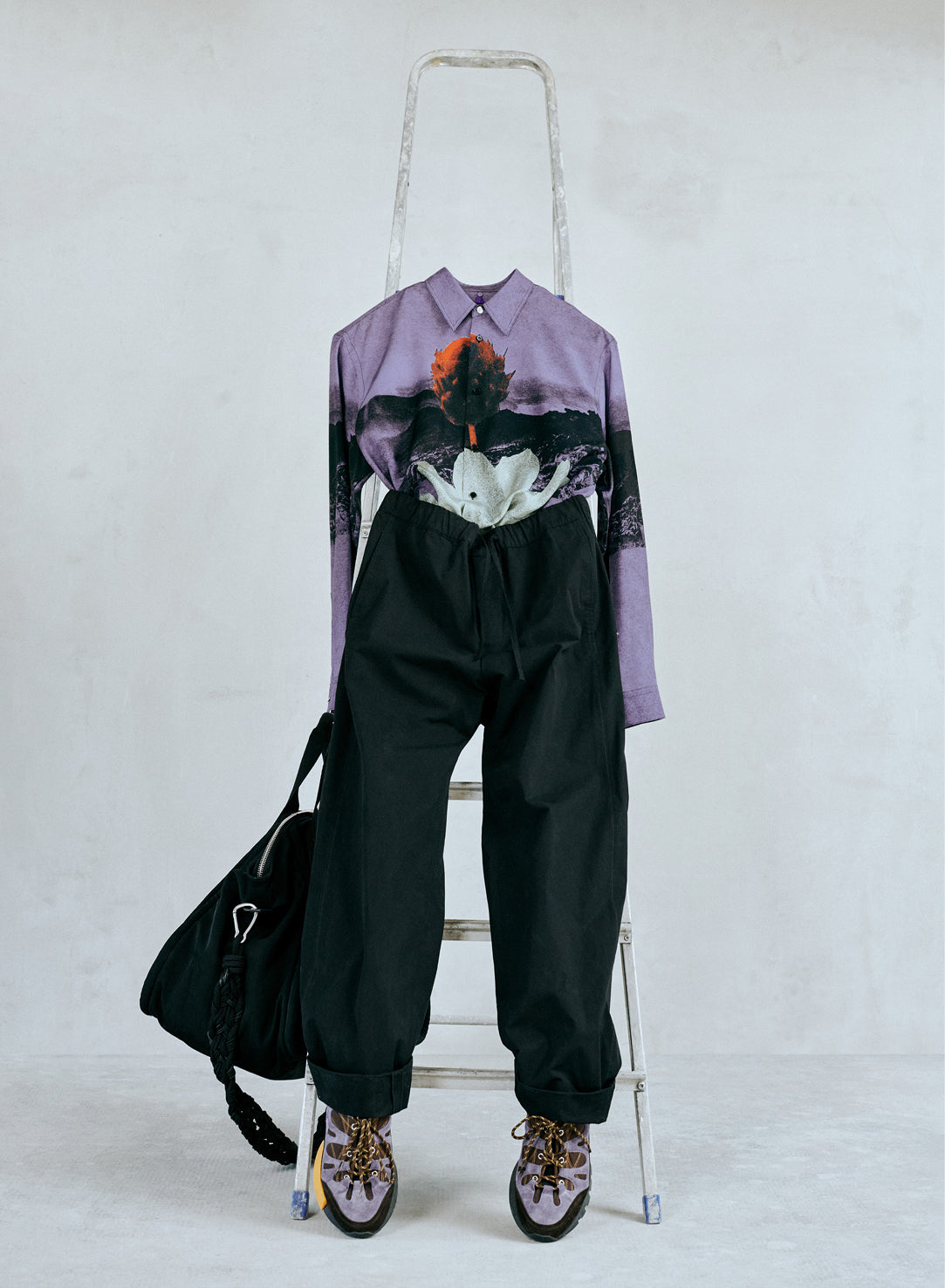 The study of form within functional Alpine garments was the departure for the OAMC Spring - Summer 2023 collection. Spending vast amounts of time outdoors, in the mountains, by the ocean, the evidence that geometry and beauty within the natural landscape draws a parallel with the functional garments, accessories, and footwear that assist the exploration of these places becomes apparent. From voluminous three-dimensional pockets to sharp, clean shirts and gilets sliced by single diagonal zippers at the collars, the forms are pure, and while they are undoubtedly functional, they offer a strong and unconventional aesthetic point of view. A manipulation of the archetypes of the mountaineering and Alpine wardrobe, but with a modern and practical sensibility.